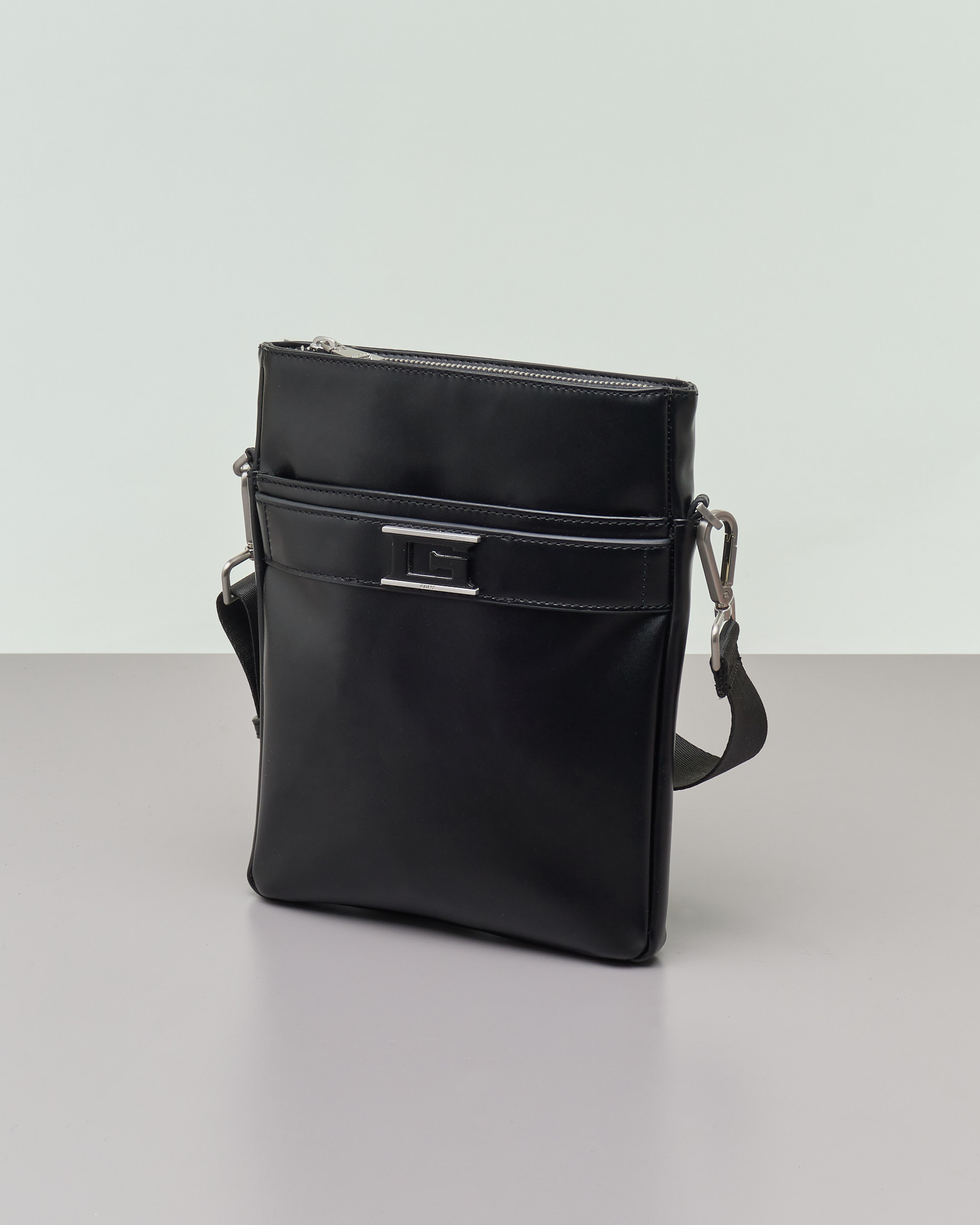 Borsa piatta nera a tracolla in simil pelle con logo G Very well made.