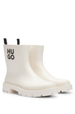 HUGO Rubberised rain boots with contrast stacked logo Very well made.