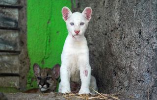 Ce b b puma albinos fait sa premi re sortie devant les visiteurs Very well made.