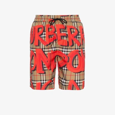 Burberry Guildes Graffiti Print Vintage Check Swim Short Red Very well made.
