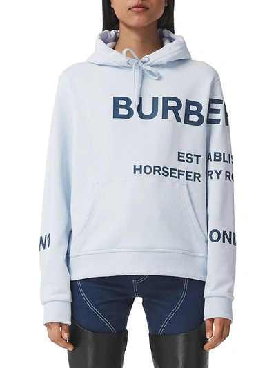 Burberry Poulter Horseferry Print Cotton Hoodie In Pale Blue Very well made.