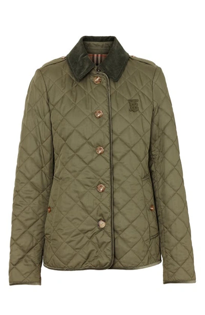 Burberry Monogram Motif Diamond Quilted Jacket In Olive Green Very well made.