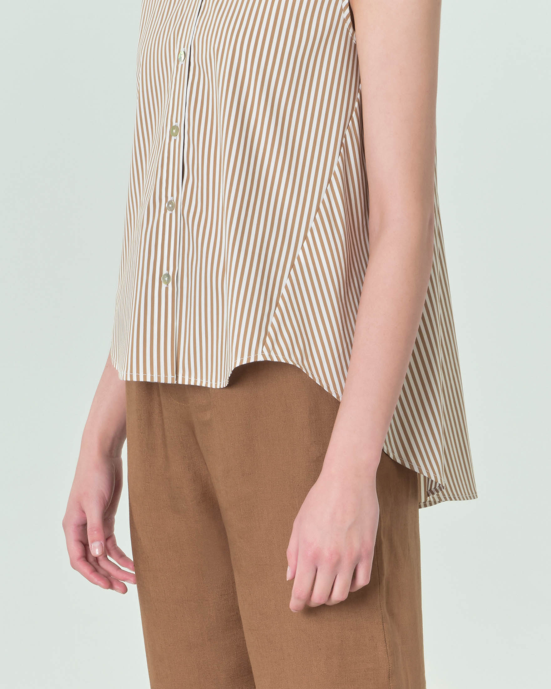 Camicia senza maniche bianca e cuoio in popeline stretch con tagli Very well made.
