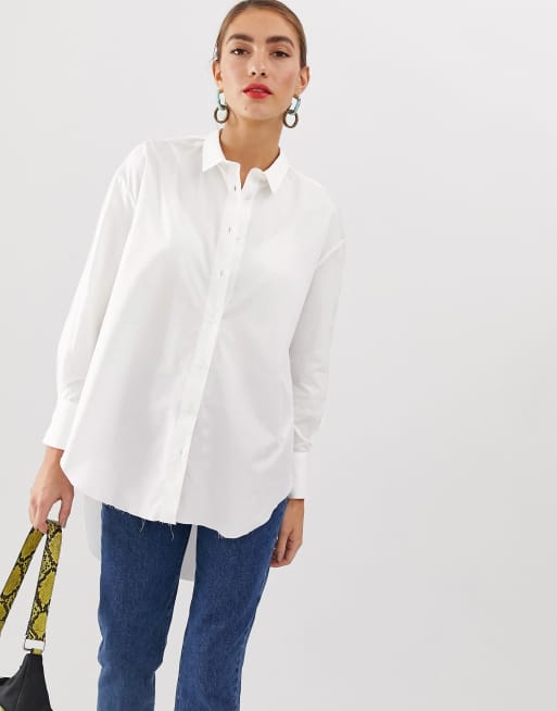 Stradivarius STR oversized longline shirt in white Very well made.