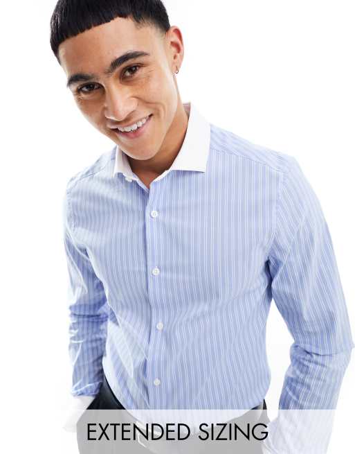 ASOS DESIGN Camicia slim a righe blu con colletto alla francese a contrasto Very well made.