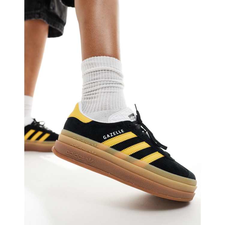 adidas Originals Gazelle Bold platform sneakers in black and gold Very well made.