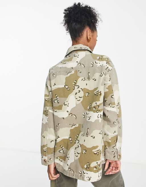 Topshop Camo Camouflage Cropped Over Shirt Jacket Brown Green Size S 8 10 12 Very well made.