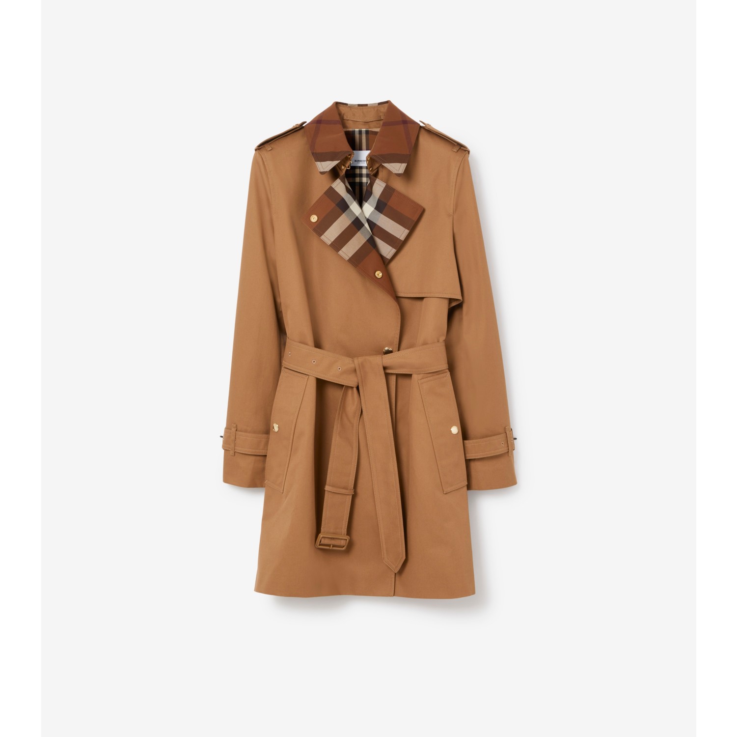 Short Check Collar Gabardine Trench Coat in Dusty caramel Very well made.