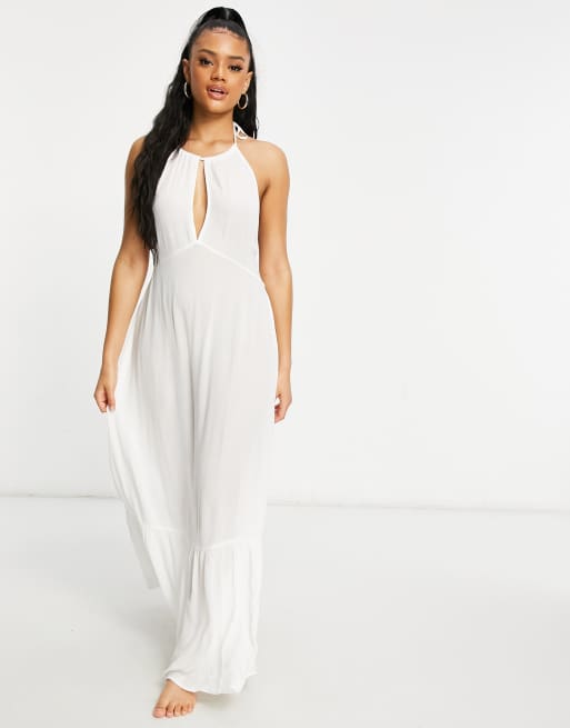 Abito lungo bianco estivo con tasche semplice lungo caftano elegante elegante copricostume da spiaggia abito da sera abito Oversize abito da festa Very well made.