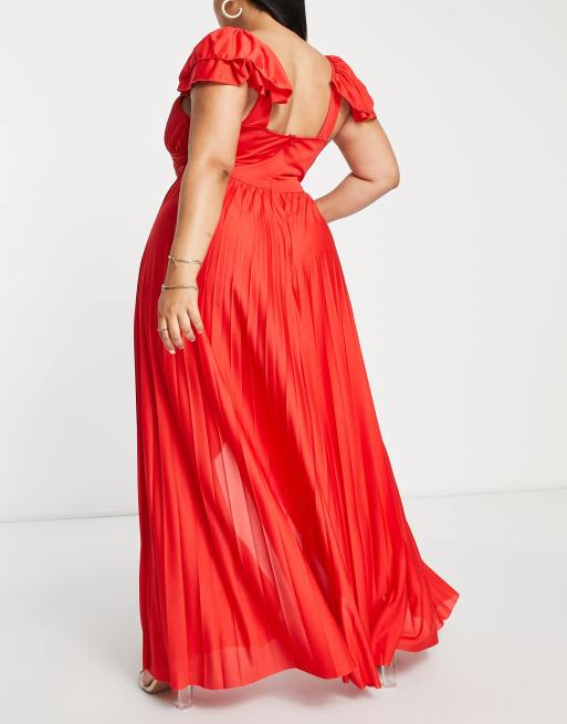 ASOS DESIGN Curve Vestito lungo plissettato rosso con maniche Very well made.