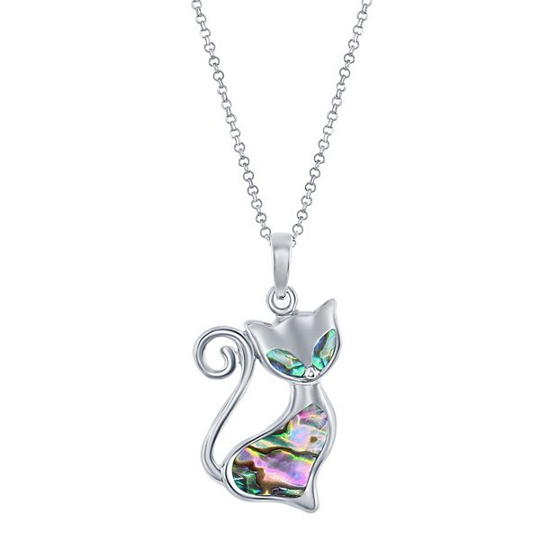 Sterling Silver Abalone Cat Necklace Very well made.