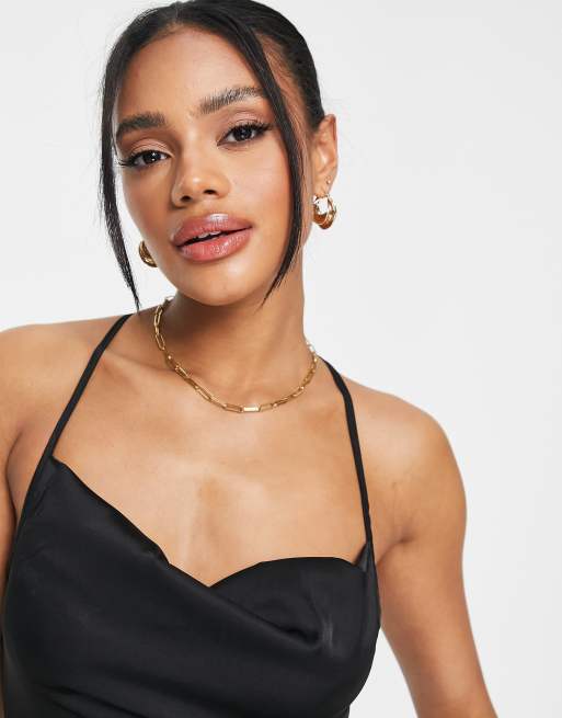 NaaNaa cowl neck back detail satin crop top in black ASOS Very well made.